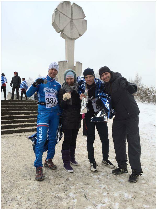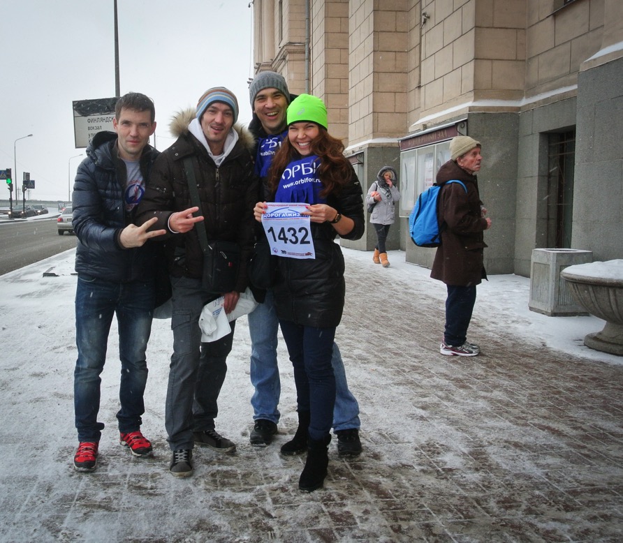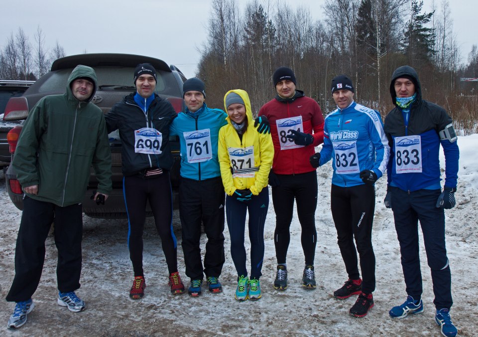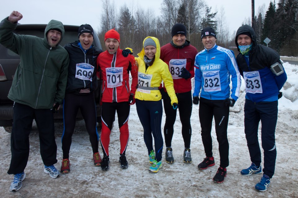 Наша команда, стартовав, естественным путем разделилась на группы: мой брат, Максим и Сергей бежали почти всю дистанцию вместе, помогая друг другу держать темп, ближе к финишу Леша оторвался от друзей-соперников. Леша вспоминает этот забег как один из лучших, так как тогда ему бежалось легко, он был на пике своей формы, и это его первый зимний официальный старт.
